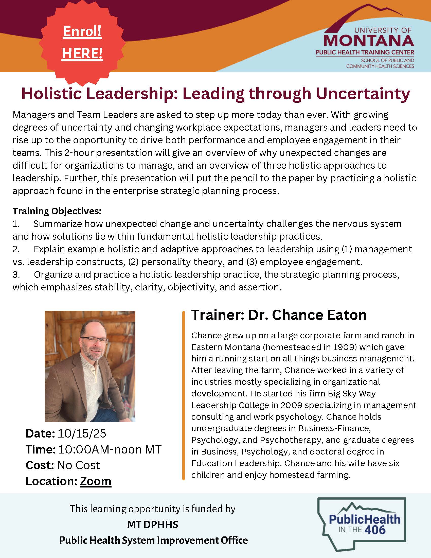 Managers and Team Leaders are asked to step up more today than ever. With growing degrees of uncertainty and changing workplace expectations, managers and leaders need to rise up to the opportunity to drive both performance and employee engagement in their teams. This free, 2-hour presentation will give an overview of why unexpected changes are difficult for organizations to manage, and an overview of three holistic approaches to leadership. Further, this presentation will put the pencil to the paper by practicing a holistic approach found in the enterprise strategic planning process.